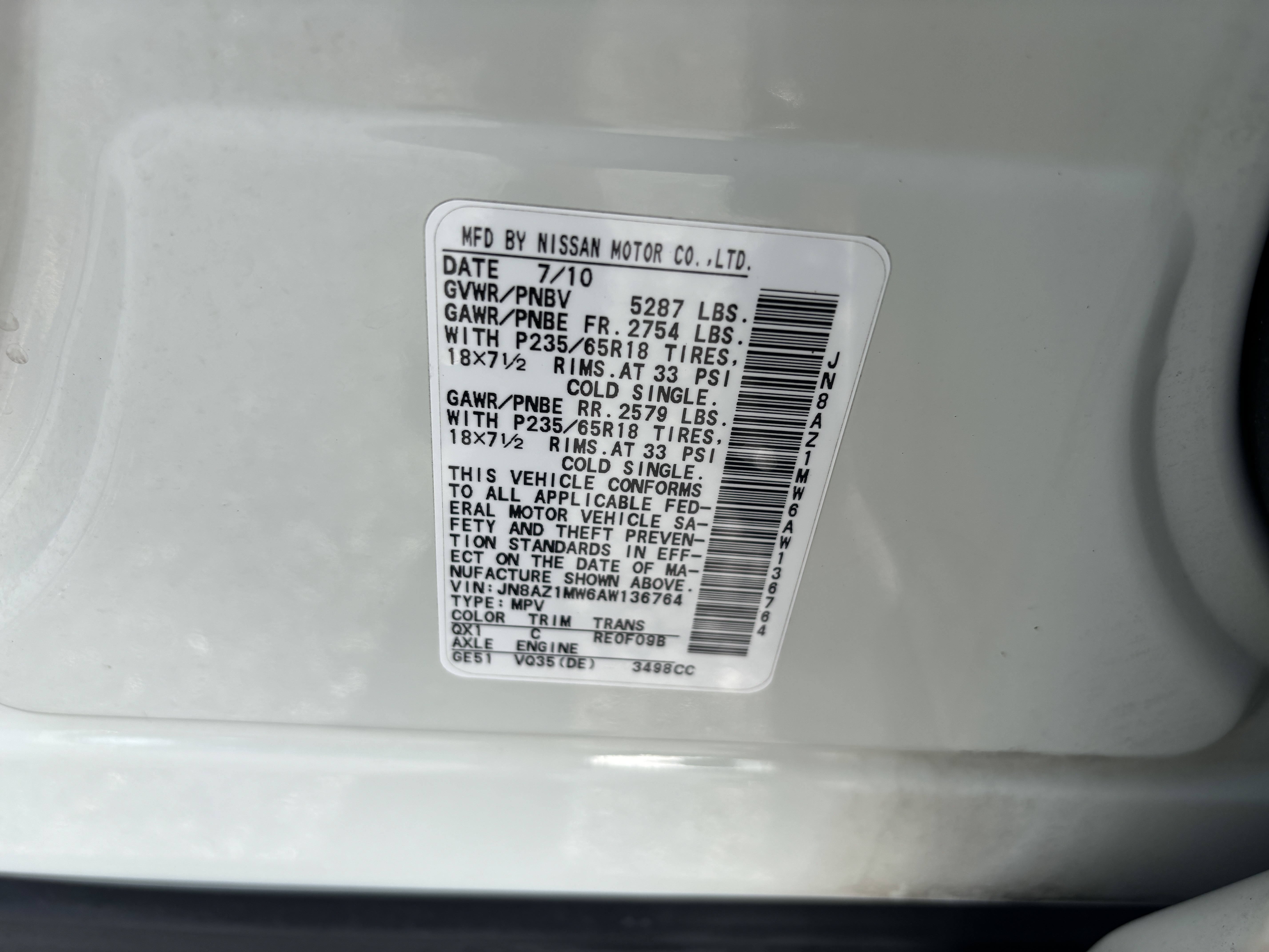 VIN: JN8AZ1MW6AW136764